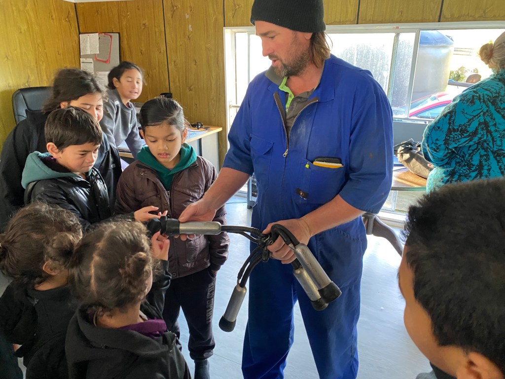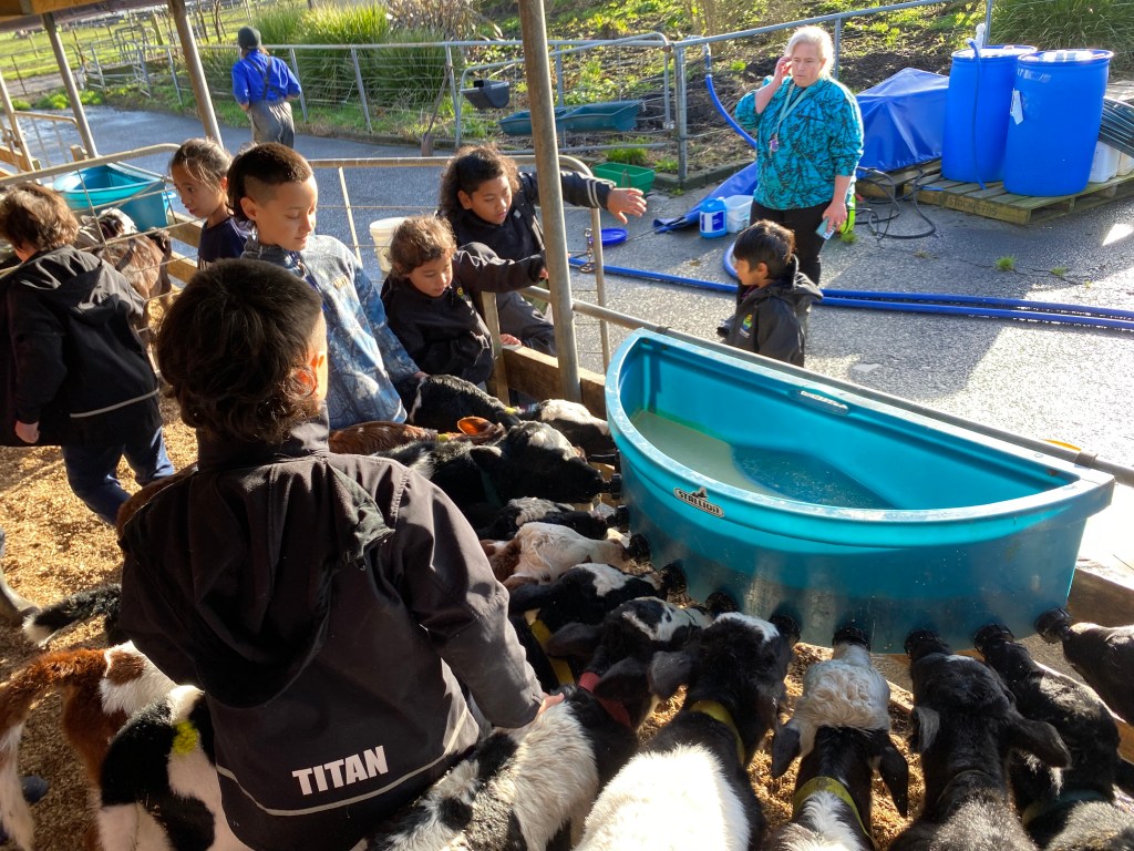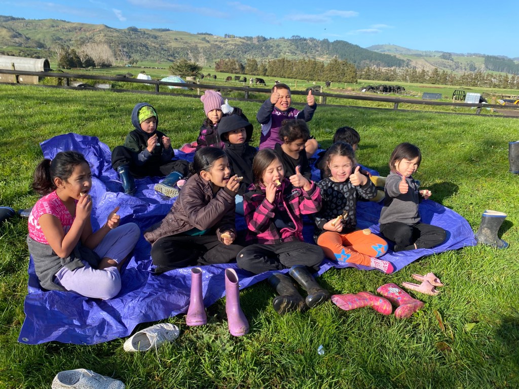 In Term 2, we visited the Anderson’s dairy farm not to far away from school. We fed calves, watched cows get milked, saw one or two calves being born, learnt how to set up paddock break fences and much more! Thank you to the Anderson Whaanau for having us.